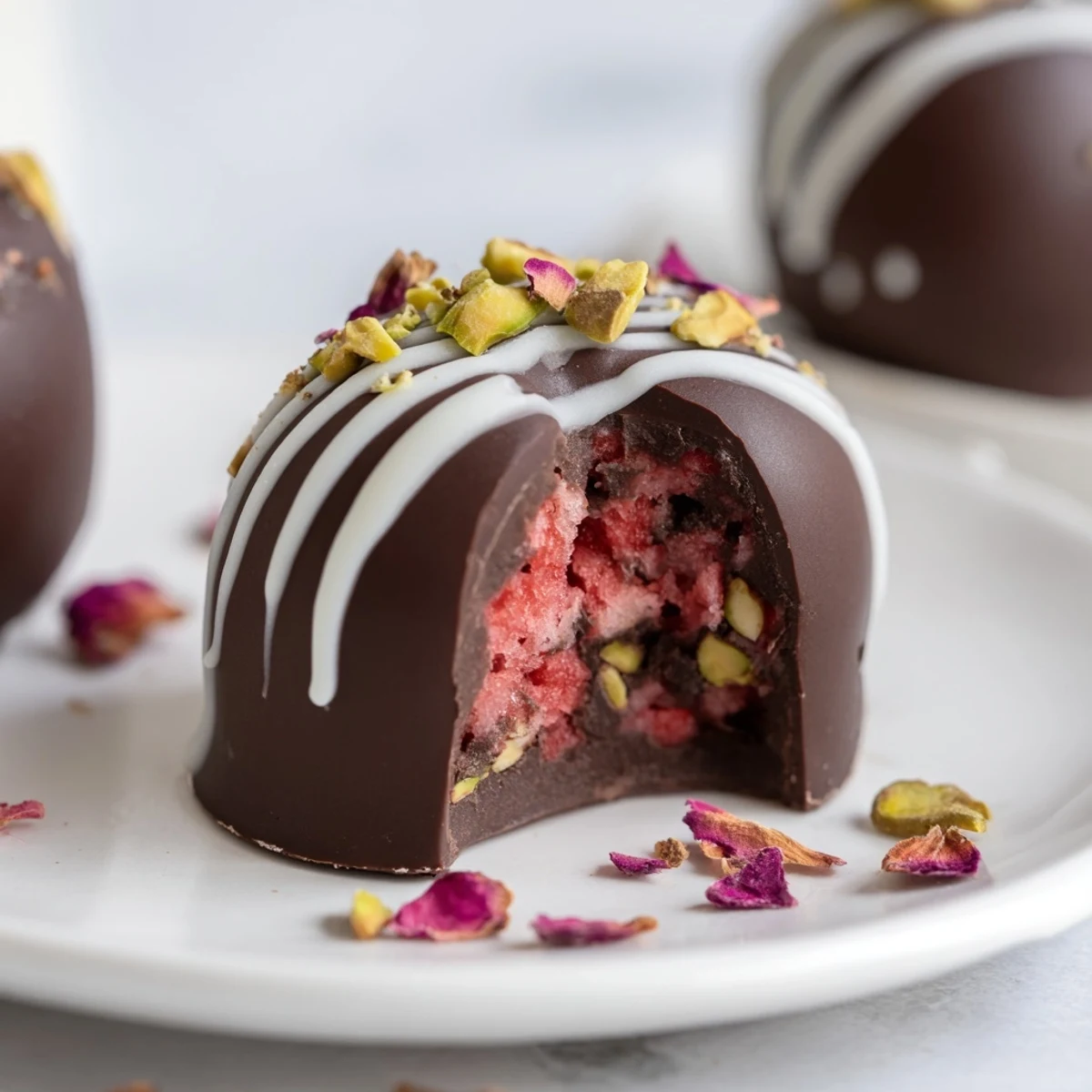 These luxurious chocolate cups feature fresh strawberries coated in honey and rose water, nestled inside smooth dark chocolate shells. The addition of chopped pistachios and optional edible gold creates a stunning presentation inspired by Dubai's dessert culture.