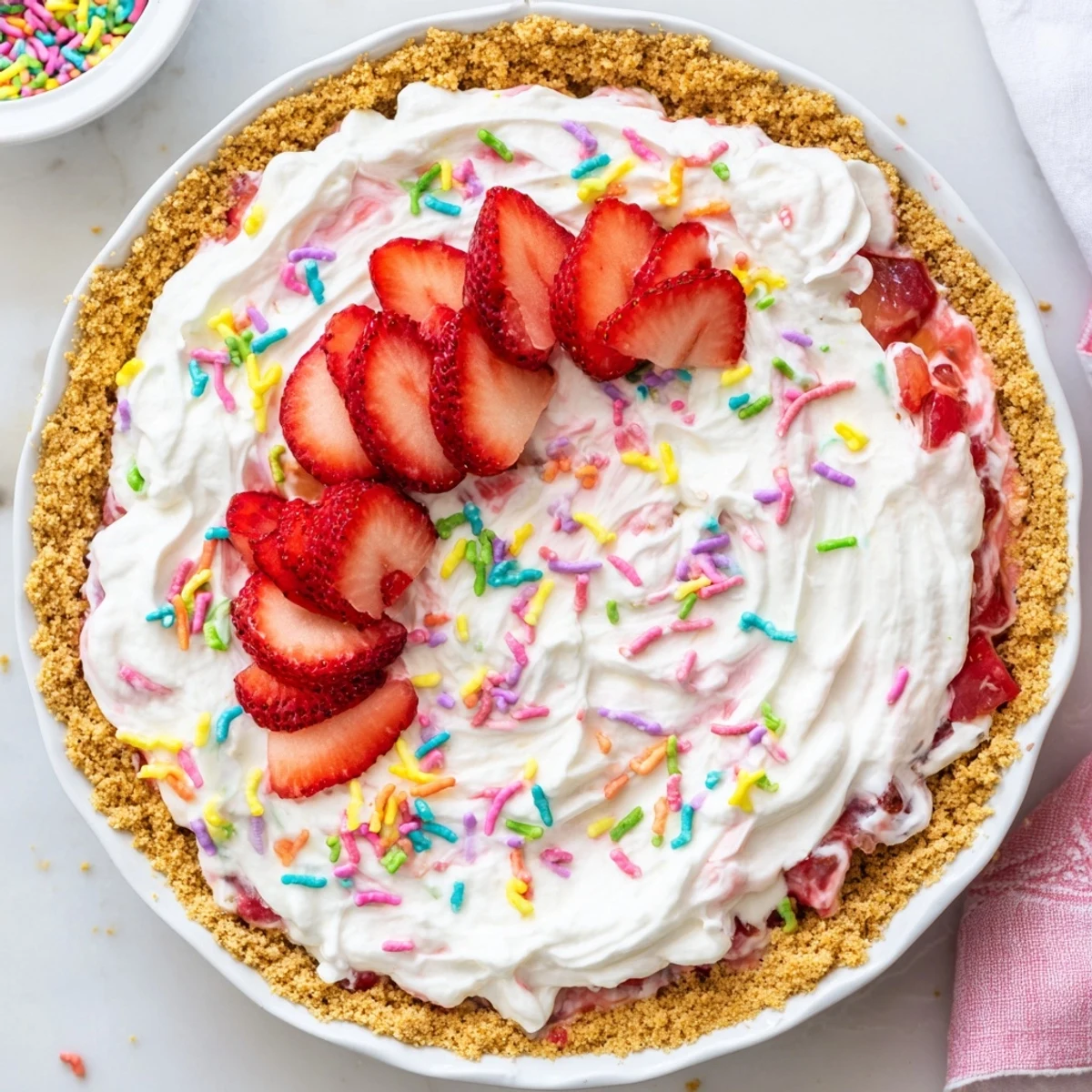- Pile on the whipped cream and arrange those sliced strawberries in a pretty pattern. Add sprinkles right before serving so they stay bright and cheerful.