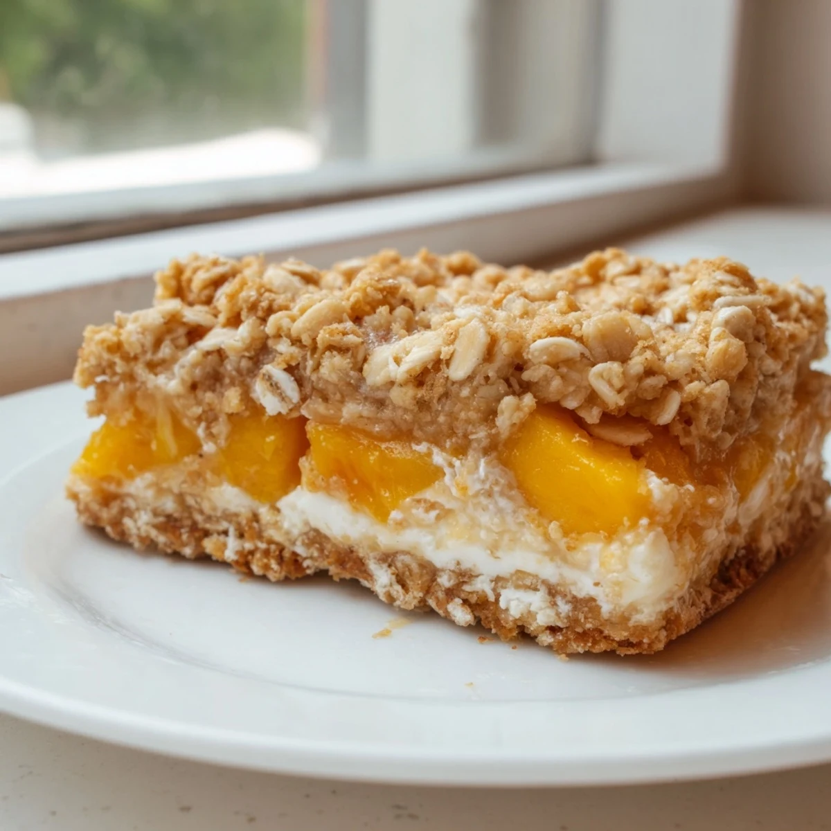 These handheld bars feature three irresistible layers: a buttery oat crumble base, a tangy cream cheese filling, and juicy diced peaches topped with more crumble. The combination creates a perfect balance of textures and flavors.